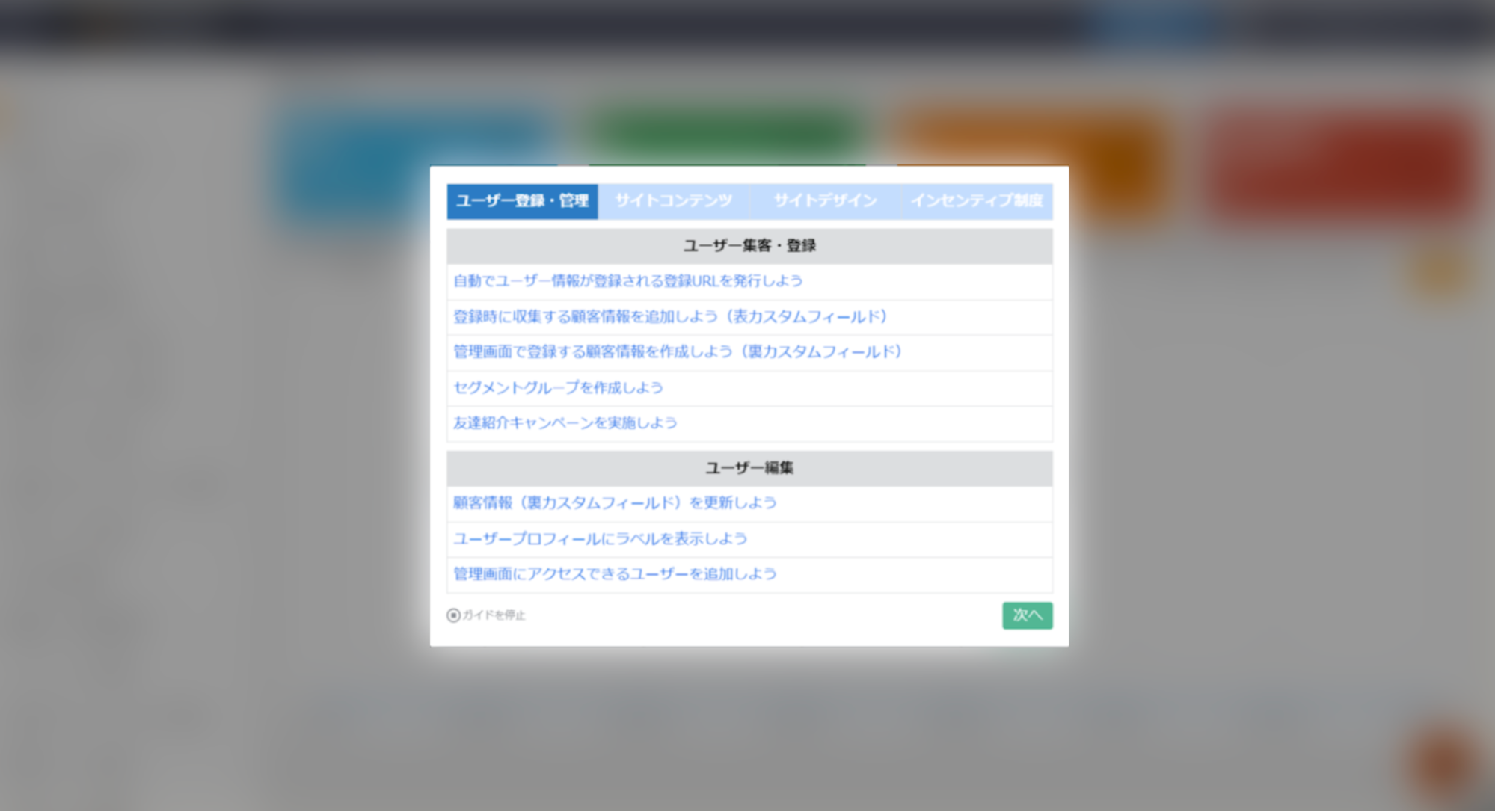 設定導線がまとまった「ガイド」を表示することで、利用開始までのステップをすぐに把握できる