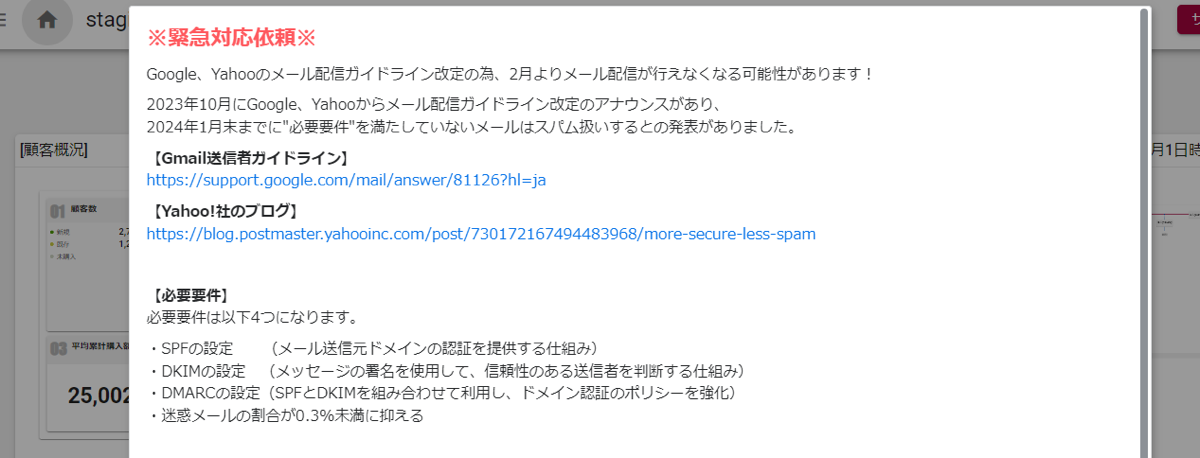 緊急対応依頼事項をポップアップで表示させ、問合せや顧客体験の悪化を未然に防止