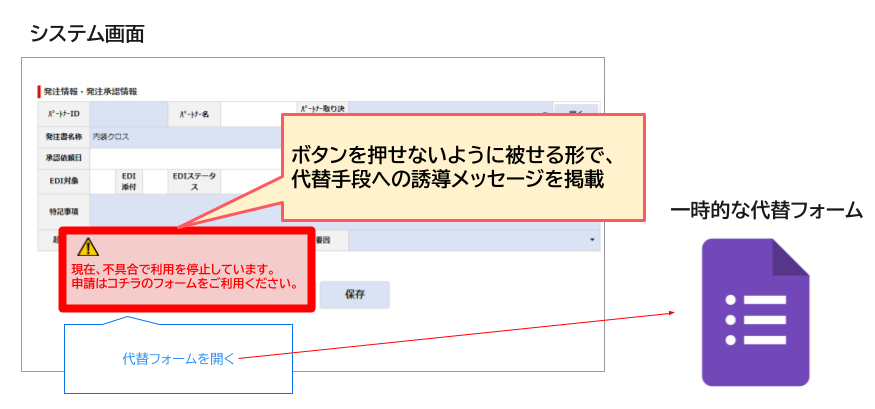 ・システム上で周知するための画面修正に開発コストがかかる