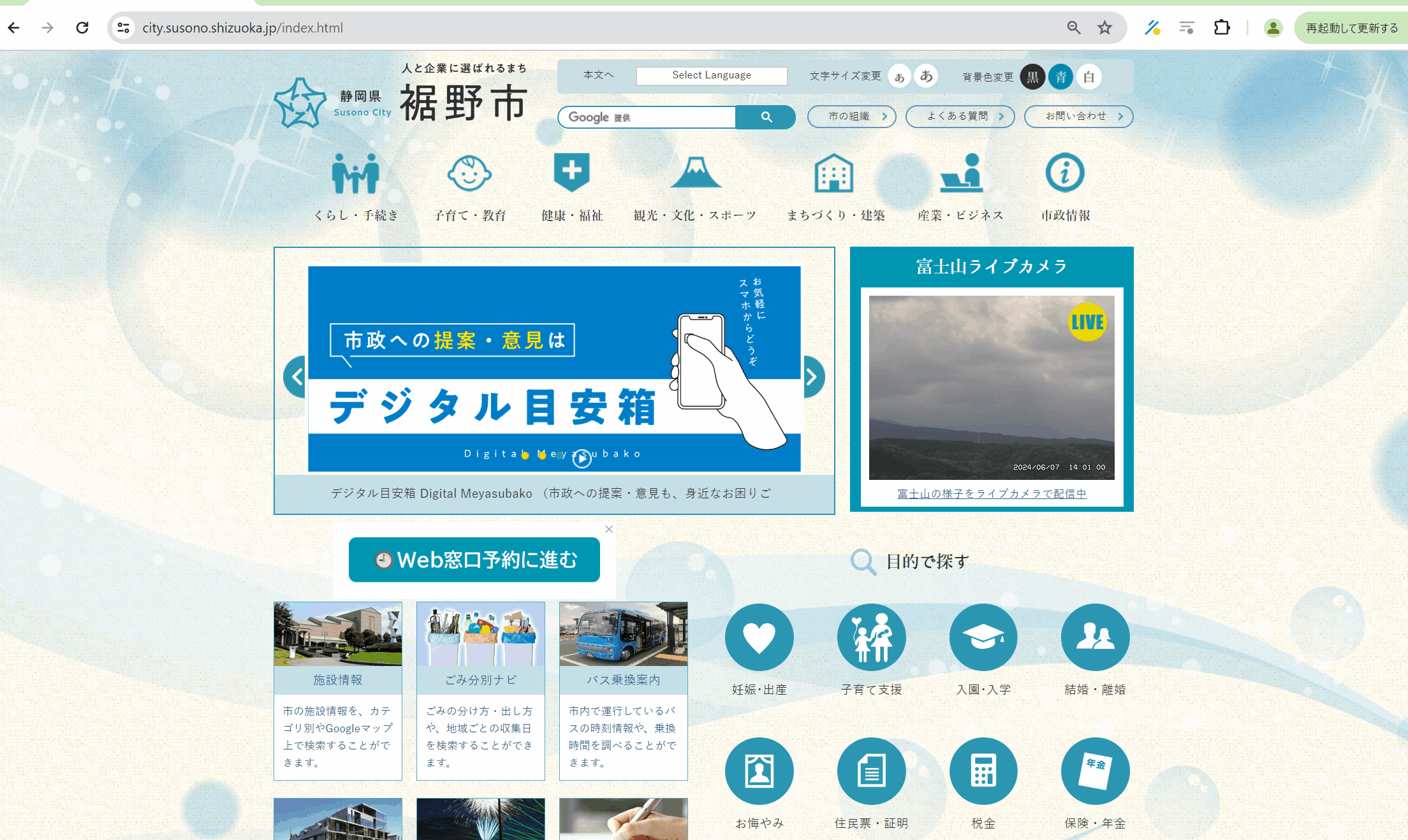 また、住民への情報提供の重要な窓口である「裾野市公式ウェブサイト」においても、網羅的な情報を掲載しているが故に、どこに自分が欲しい情報があるのか分かりづらい状況になっており、担当課への電話問合せが発生している状況です。