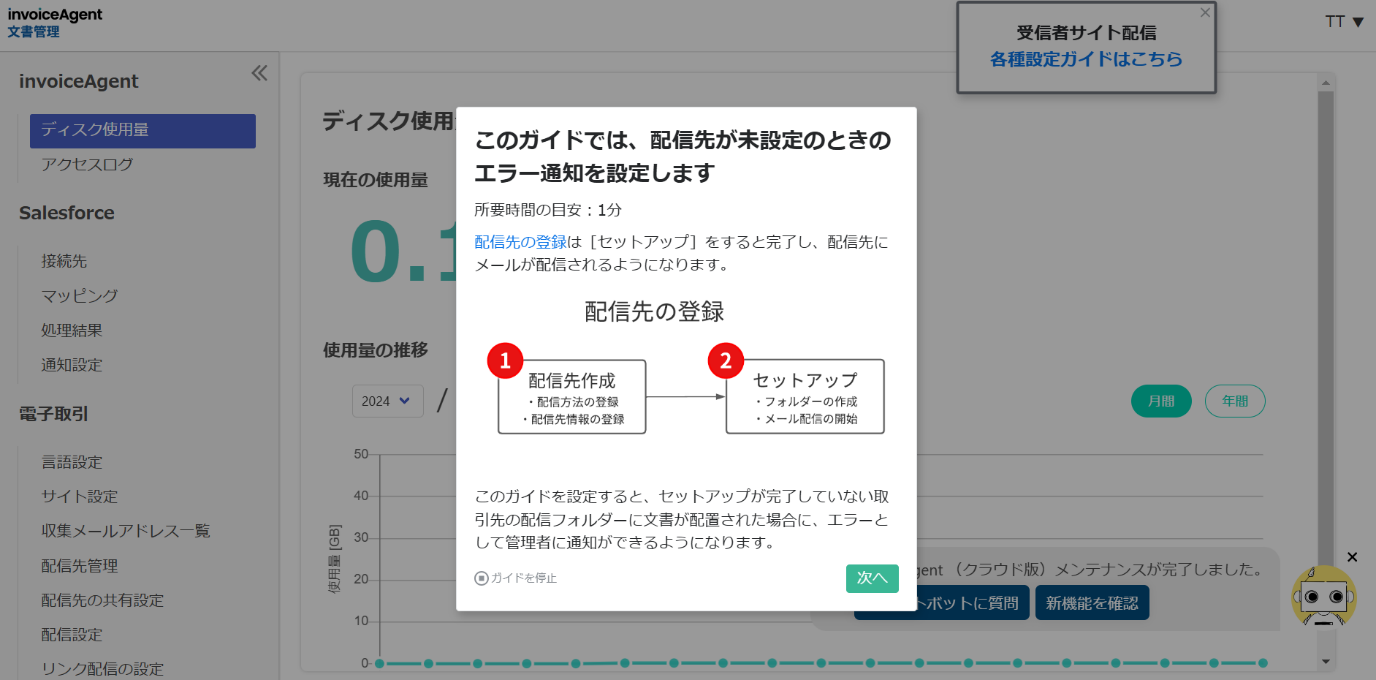 ・初期導入時にユーザーが把握・対応すべき操作をガイドで案内